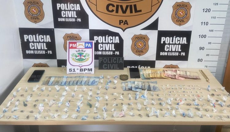 Após reunir essas informações, as equipes policiais dos dois estados realizaram diligências para capturar o suspeito e localizar as drogas em sua posse. O homem foi preso ao sair de sua residência, em Dom Eliseu, e com ele foram encontrados oito papelotes de uma substância semelhante a crack, um aparelho celular e R$ 408,00 em espécie. Na residência do suspeito, foram encontrados mais dois papelotes de substância semelhante a crack, pesando aproximadamente 5.9 gramas.