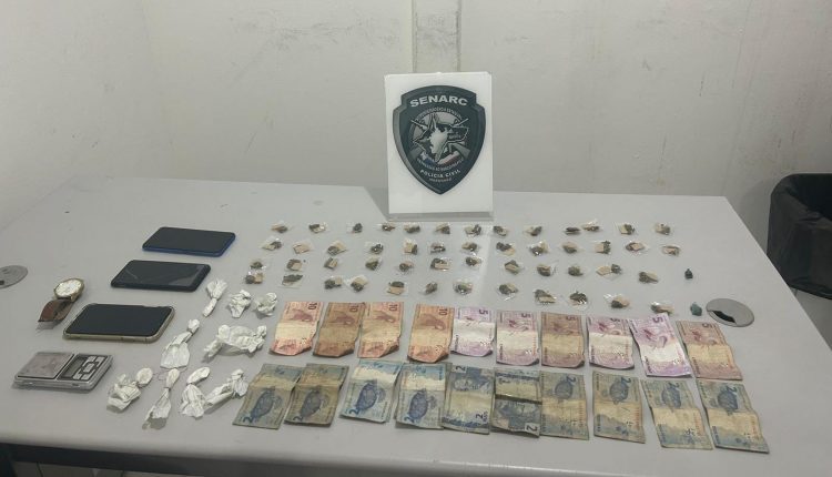 Durante a operação, foram apreendidos 50 invólucros de maconha, 10 unidades de crack, duas de cocaína, uma balança de precisão e dinheiro proveniente da venda ilícita.