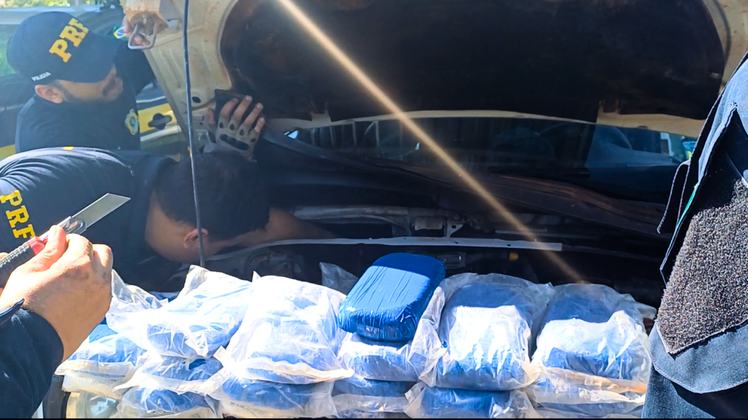 Ao aprofundar a fiscalização, um forte odor típico de entorpecente foi detectado próximo ao painel do Renegade. Após uma busca minuciosa, os policiais encontraram 38 tabletes de crack escondidos por trás do painel, totalizando cerca de 40 kg. Equipes da Polícia Civil do Maranhão, especializadas em cães farejadores, foram acionadas para verificar o Corolla, mas nada foi encontrado.