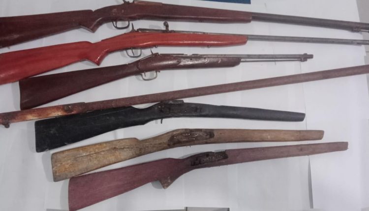 Durante a operação desta manhã, além das espingardas, foram apreendidos três armações de madeira para cabos de espingarda, um cano longo de ferro e vários instrumentos possivelmente usados na fabricação das armas.