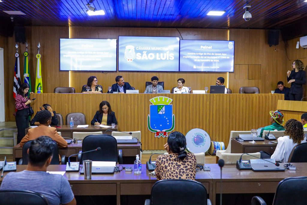 O plenário Simão Estácio da Silveira foi palco na tarde desta quarta-feira, 10, do painel “História Antiga da Ilha de Upaon Açu: Implementação da Lei Municipal 7.565 de 29 de Fevereiro de 2024”. O evento teve como objetivo apresentar os benefícios de integrar a disciplina ainda nos anos iniciais da vida escolar.