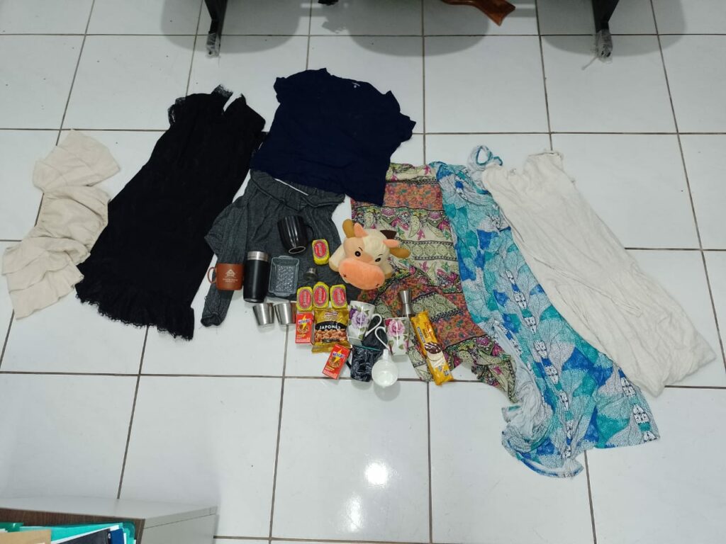 Durante a abordagem policial, foram encontrados na bolsa da suspeita roupas, xícaras e sabonetes que pertenciam aos empregadores. Além disso, ao ser questionada pelos policiais, a mulher tentou enganar a guarnição fornecendo um nome falso.