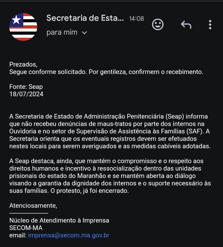 A SEAP encaminhou uma nota referente ao ocorrido: