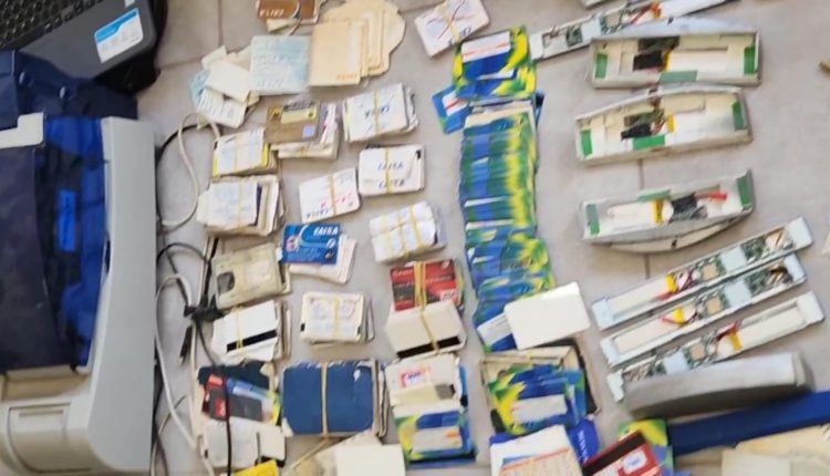 Nos endereços, os policiais civis apreenderam uma grande quantidade de documentos de identificação, cartões bancários, cartões de benefícios, equipamentos e apetrechos para o fabrico e falsificação de cartões bancários, além de munições, equipamentos eletrônicos e outros objetos de propriedade de um dos investigados.