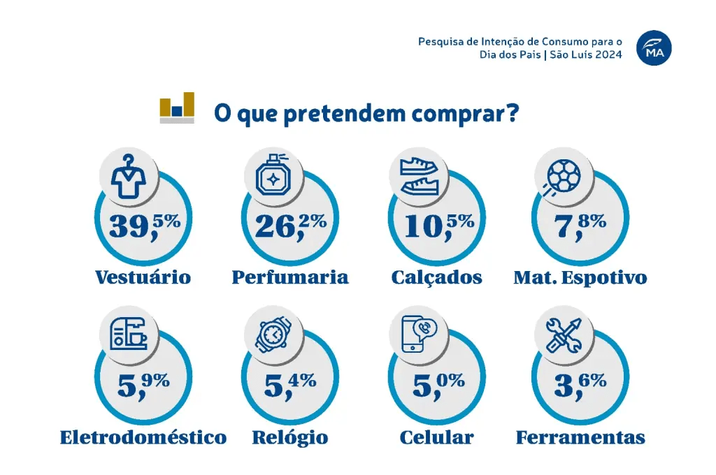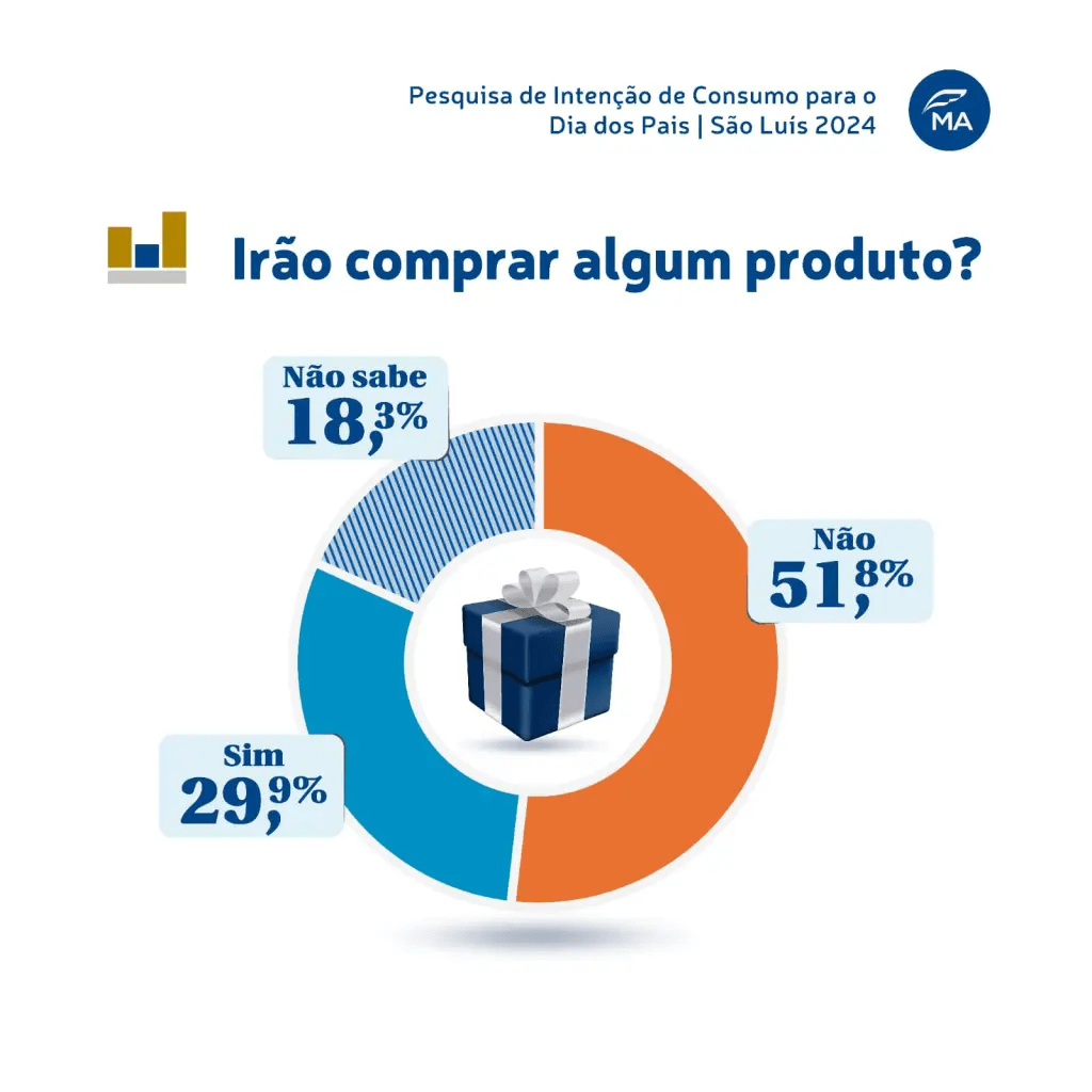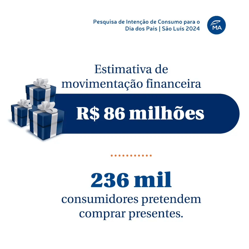 A Pesquisa de Intenção de Consumo para o Dia dos Pais 2024, realizada pela Federação do Comércio de Bens, Serviços e Turismo do Estado do Maranhão (Fecomércio-MA), revelou que 236.462 consumidores ludovicenses, cerca de 29,9% dos entrevistados, pretendem presentear seus pais no segundo domingo de agosto. Com um gasto médio estimado em R$ 259 por presente e comemoração, o comércio de São Luís pode esperar uma movimentação financeira de R$ 86.948.062,20.