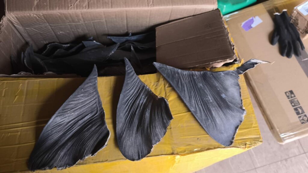 A Receita Federal verificou que o material não possuía documentação legal, infringindo normas ambientais brasileiras. A pesca de tubarões é proibida no país, sobretudo pela prática ilegal de “finning”, que consiste na captura dos animais para a retirada apenas das barbatanas, descartando o restante do corpo no mar. O valor das barbatanas no mercado internacional é altíssimo, podendo chegar a U$ 3.000,00 por quilo, especialmente devido à demanda na culinária chinesa, onde são usadas na sopa de barbatana de tubarão, também conhecida como “sopa ostentação”, cujo prato pode custar até U$ 500,00.