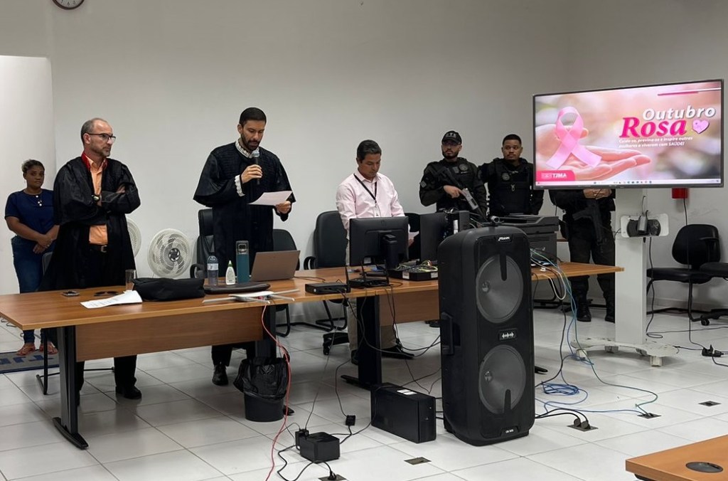 Em sessão de julgamento realizada nesta quinta-feira, dia 17 de outubro, os réus João Vítor Souza Lopes e Geílson de Jesus Ferreira foram considerados culpados pelo Conselho de Sentença, por crime de homicídio. Eles receberam a pena de 13 anos e nove meses de prisão cada um, devendo ser cumprida, imediatamente, em regime fechado. A sessão ocorreu no Salão do Júri, no Fórum de Santa Inês, e foi presidida pelo juiz Raphael Leite Guedes, titular da 4ª Vara.