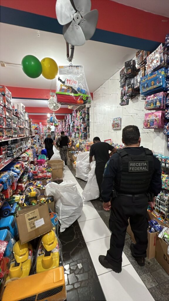 Cinco alvos foram fiscalizados no centro da cidade de São Luís. Quatro pontos estavam sob suspeita de comercializar produtos falsificados, como vestuários, calçados e brinquedos, enquanto um dos alvos também foi autuado pelo crime de descaminho. Entre os produtos apreendidos estão eletrônicos, como celulares e peças para celulares, que não possuíam comprovação de importação regular ou selo de certificação da Anatel.