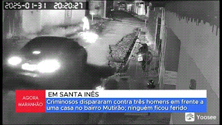 Um vídeo registrou o momento em que tiros foram disparados de dentro de um carro contra três homens que conversavam na frente de uma casa, no município de Santa Inês. O ataque ocorreu na noite da última sexta-feira (31), no bairro Mutirão.