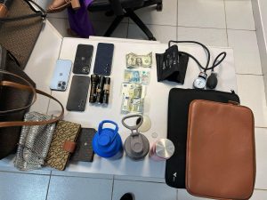 Entre os itens apreendidos estão materiais médicos, ferramentas, artigos de pesca, moedas estrangeiras, joias e quatro celulares. Também foram recolhidos armas brancas, uma balança de precisão, um tesourão usado para romper correntes e dezenas de bolsas femininas.