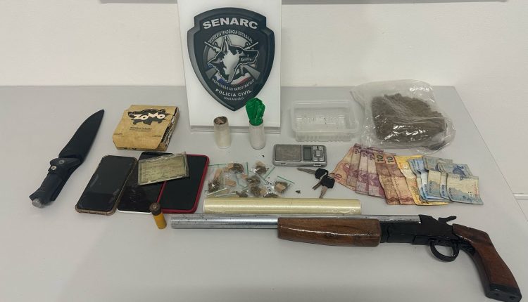 A Polícia Civil do Maranhão prendeu em flagrante, na tarde da última segunda-feira (14), um homem pelos crimes de tráfico de drogas e posse ilegal de arma de fogo no bairro Anjo da Guarda, em São Luís. A ação foi conduzida pela Superintendência Estadual de Repressão ao Narcotráfico (SENARC), a partir de denúncias que indicavam a existência de um ponto de venda de entorpecentes na região.