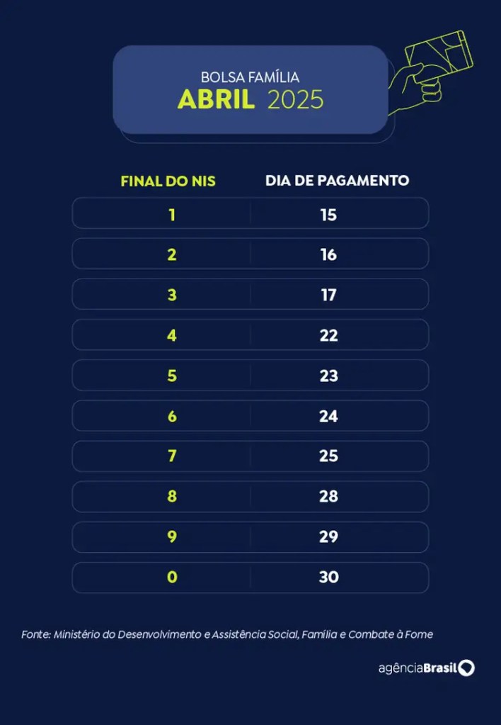 A Caixa Econômica Federal realiza nesta terça-feira (22) o pagamento da parcela de abril do Bolsa Família para os beneficiários com Número de Inscrição Social (NIS) de final 4. O valor mínimo do benefício é de R$ 600, mas com os adicionais previstos, o valor médio sobe para R$ 668,73. Neste mês, o programa federal deve alcançar 20,48 milhões de famílias, com um investimento total de R$ 13,66 bilhões, segundo o Ministério do Desenvolvimento e Assistência Social.
