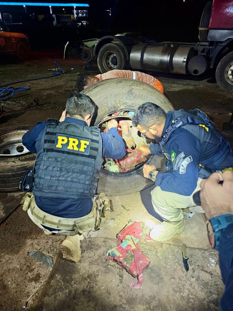 Na noite desta quinta-feira (15), a Polícia Rodoviária Federal (PRF) apreendeu mais de 188 kg de drogas que estavam escondidas dentro dos pneus de um caminhão, durante fiscalização no km 18 da BR-135, nas proximidades do acesso à Ponta da Espera, em São Luís (MA).