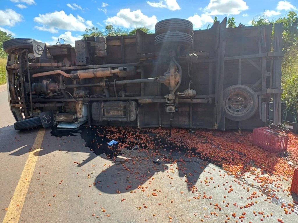 O acidente aconteceu por volta das 9h, quando o caminhão, que seguia no sentido Açailândia-Imperatriz, perdeu o controle, invadiu a pista contrária e tombou, espalhando a carga de hortifrúti pela rodovia.