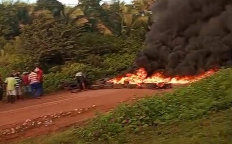 A manifestação acontece na entrada de Pinheiro e utiliza pneus e outros materiais para bloquear completamente a passagem de veículos. Apenas ambulâncias estão sendo autorizadas a atravessar o bloqueio, segundo informações dos próprios manifestantes.