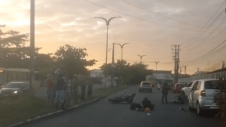 De acordo com informações preliminares, uma motocicleta colidiu com uma senhora que atravessava a via. Na sequência, um carro de passeio também se envolveu no acidente. Imagens feitas por motoristas que passavam pelo local mostram a idosa, o condutor da moto e o passageiro caídos no chão, à espera de atendimento médico.