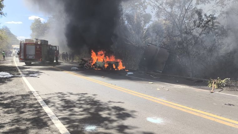 De acordo com a Polícia Rodoviária Federal (PRF), a colisão lateral, em sentidos opostos, ocorreu por volta das 13h e envolveu três veículos: um caminhão Ford/Cargo, uma picape Chevrolet/Montana e uma carreta tracionada por um cavalo-trator Scania/R500 A6X4.