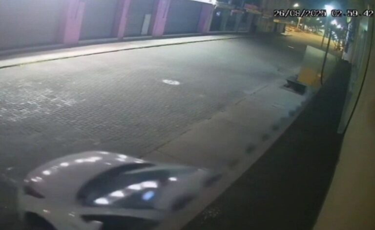 Na madrugada desta terça-feira (26), criminosos usaram um carro para arrombar uma joalheria localizada na rua do Passeio, no Centro de São Luís. Câmeras de segurança registraram o momento em que os suspeitos deram marcha à ré e colidiram contra o portão da loja.