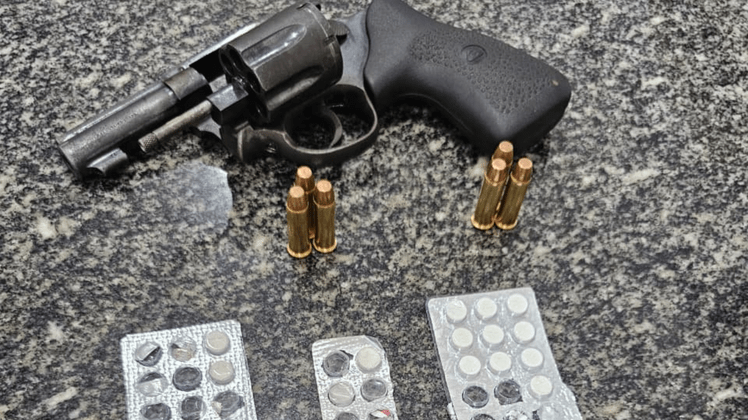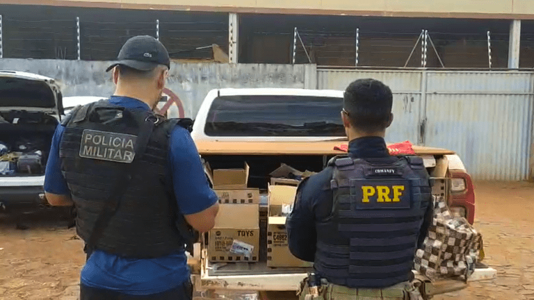 Durante a abordagem, os policiais também interceptaram um automóvel que acompanhava o caminhão. Dentro dele, foram encontradas nove caixas de brinquedos da carga roubada, um revólver calibre .38 municiado em um compartimento oculto, além de plaquetas veiculares adulteradas, cartelas de anfetaminas (“rebites”) e uma mochila.