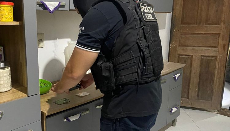 Durante as diligências, os policiais apreenderam uma arma de fogo, um simulacro, aparelhos celulares e uma quantidade expressiva de drogas.