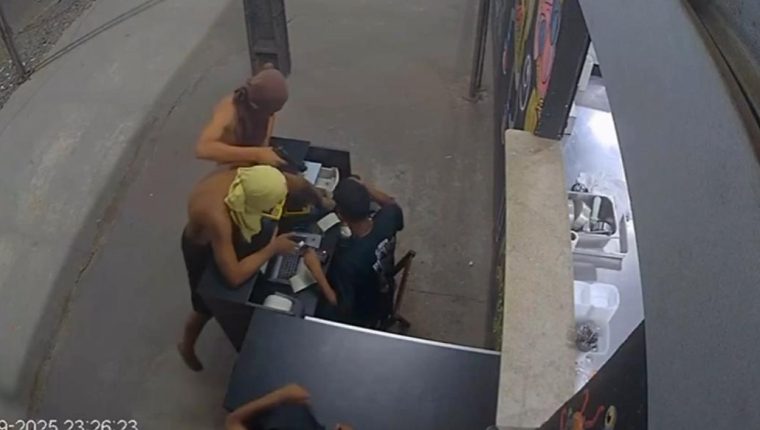 Os suspeitos usavam camisas enroladas na cabeça para dificultar a identificação e portavam uma pistola. Eles abordaram um funcionário que estava no caixa, levando dinheiro e um celular.