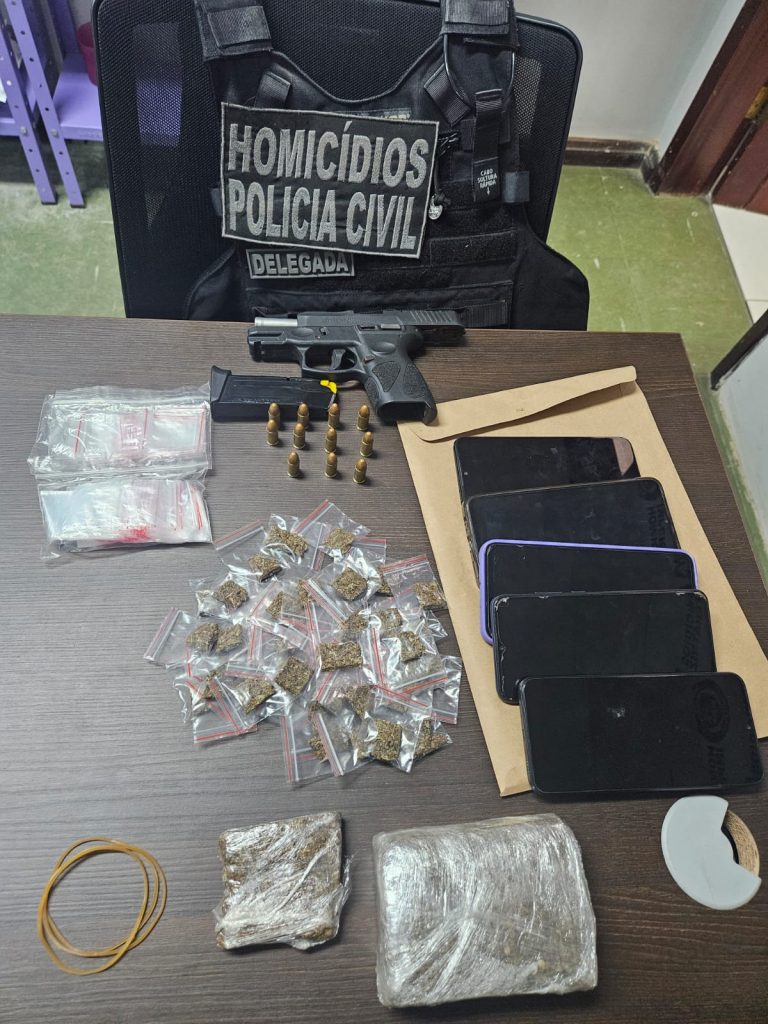 Durante a operação, um dos presos também foi autuado em flagrante por porte ilegal de arma de fogo, após ser encontrado com uma pistola calibre 9 mm, além de uma motocicleta Honda Biz com registro de roubo e cerca de 500g de substância semelhante à maconha.