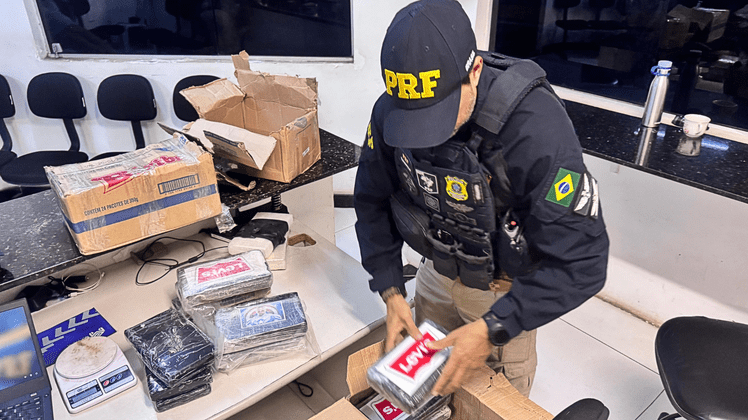 Na inspeção, os policiais encontraram três caixas contendo 18 pacotes de substância análoga a cloridrato de cocaína, totalizando 22 kg. Além disso, foi localizado um recipiente com cerca de 2 gramas da mesma substância, que o motorista afirmou ser para uso pessoal.