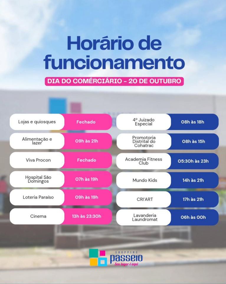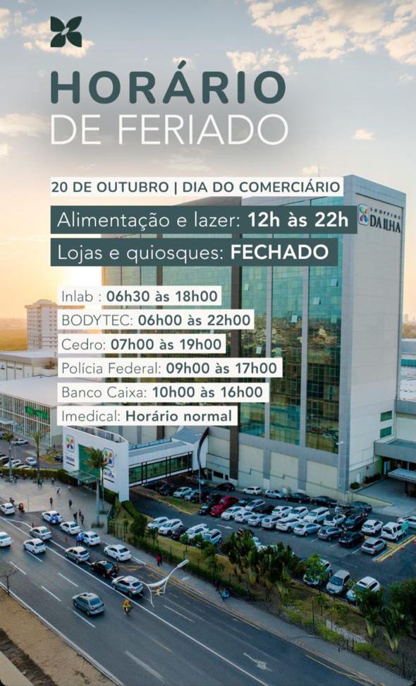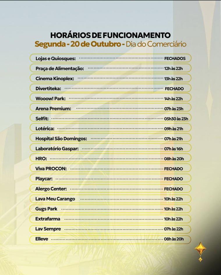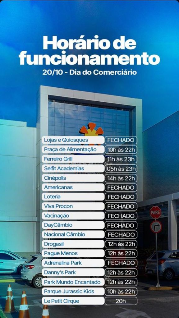 Os shopping centers da capital divulgaram em suas redes sociais os horários detalhados de funcionamento para o Dia do Comerciário.