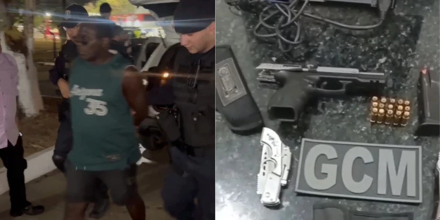 De acordo com a Guarda Municipal, o homem apresentava sinais de embriaguez e tentou fugir ao perceber a aproximação da viatura, mas foi capturado logo em seguida. Durante a revista no veículo, os agentes encontraram uma pistola calibre .40, quinze munições e dois canivetes.