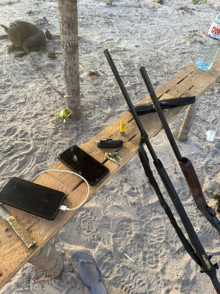 Ao todo, quatro pessoas foram presas e autuadas em flagrante por posse ilegal de arma de fogo, enquanto um dos investigados segue foragido e está sendo procurado pelas forças de segurança.
