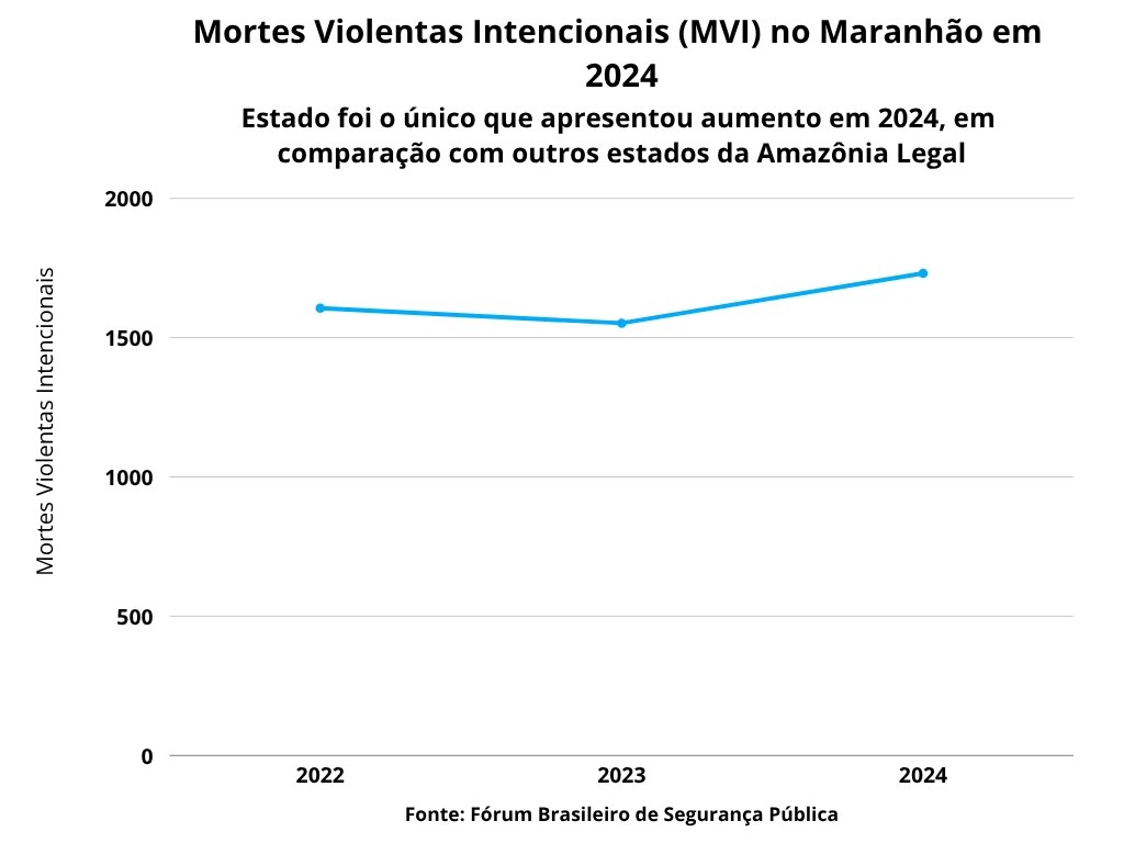 O Maranhão foi o único estado da Amazônia Legal a apresentar alta na taxa de Mortes Violentas Intencionais (MVI) em 2024, segundo a 4ª edição do relatório Cartografias da Violência na Amazônia 2025, divulgado nesta quarta-feira (19) pelo Fórum Brasileiro de Segurança Pública (FBSP).