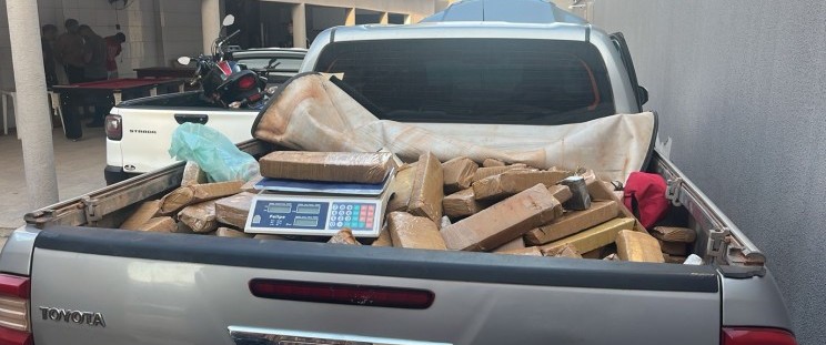 Além dos entorpecentes, três veículos foram apreendidos: duas caminhonetes — uma Hilux e uma Strada, ambas com registro de roubo — e uma motocicleta.