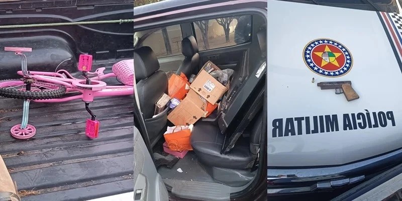 O carro da família e diversos objetos roubados foram recuperados, entre eles três celulares, R$ 1.350, duas televisões, um colar de ouro e uma bicicleta infantil.